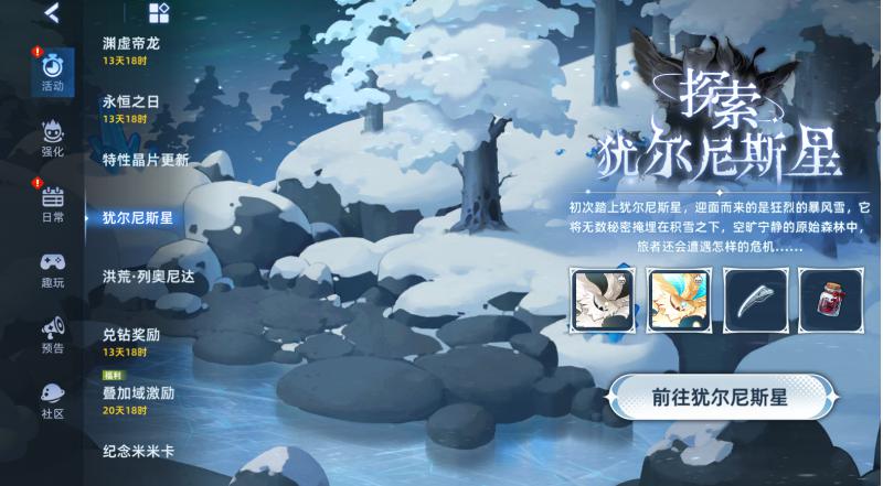 本周我们来到了全新的犹尔尼斯星!下面大家一起来看看本周更新的具体活动内容吧!