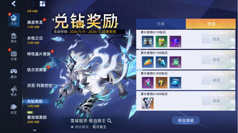累计消费500钻石,领取银月狼王全新传说皮肤!